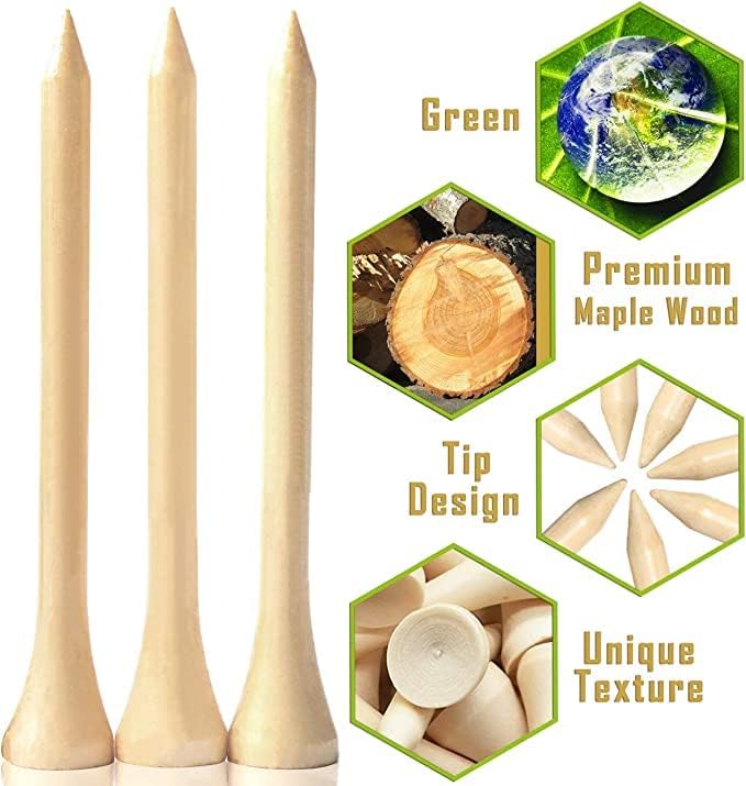 【Enviro-Friendly】 100% Natural Hardwood. Precision milled from selected hard woods for consistent performance, wood golf tees material is environmentally non-toxic, be helpful for you and your family health. Golf tees are stronger wood tees, ensuring your favorite golf course and equipment stays in tip-top shape.
