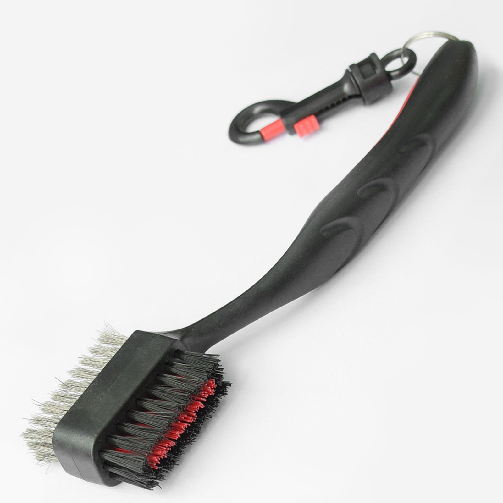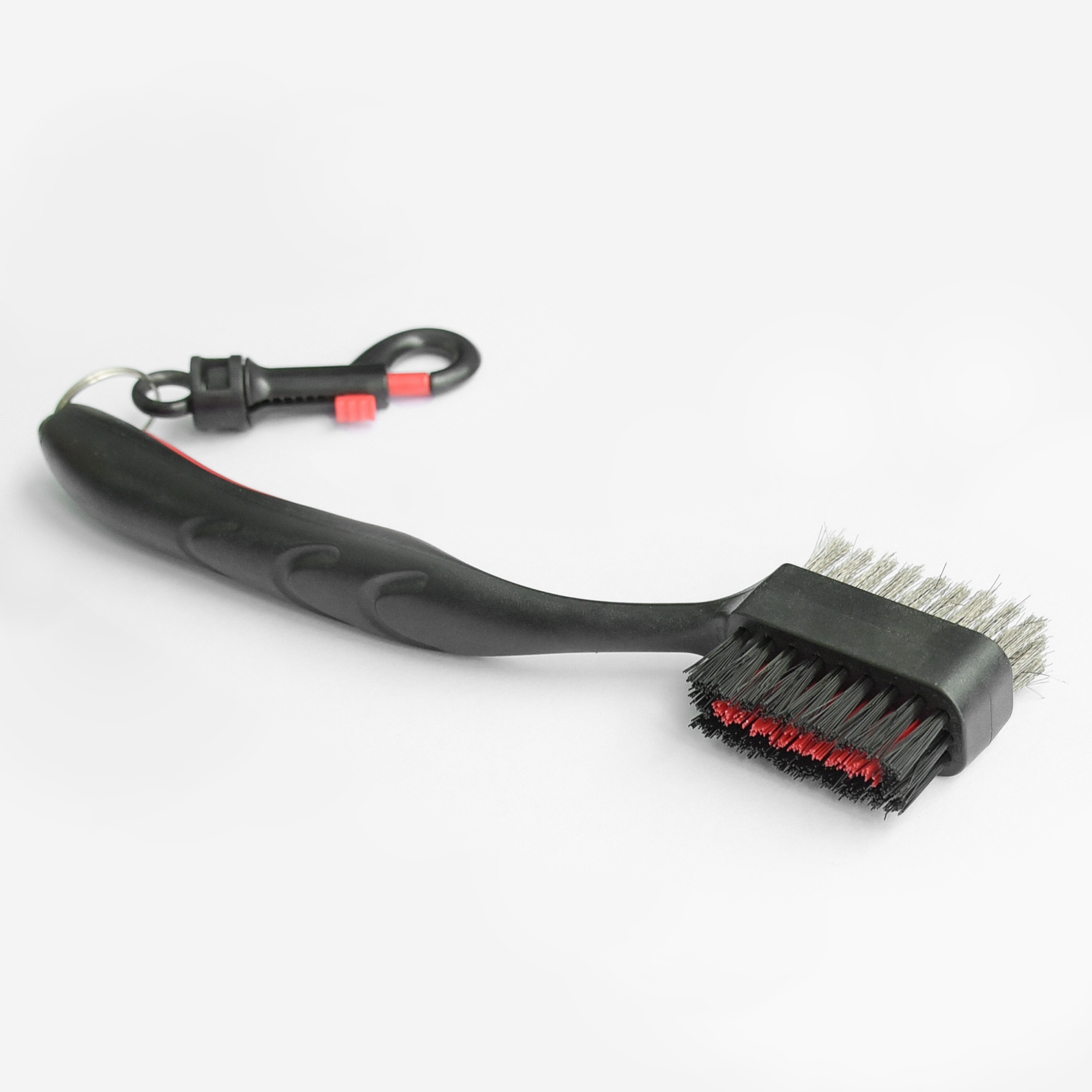 Golf Gifts & Gallery 2-Way Club Brush is designed to help keep your golf clubs in top shape. It features a soft, synthetic nylon brush for wood surfaces and a steel brush for cleaning out the grooves on your irons and metal woods. The clip lets you easily attach it onto your golf bag so it will be handy anytime your clubs need a cleaning.