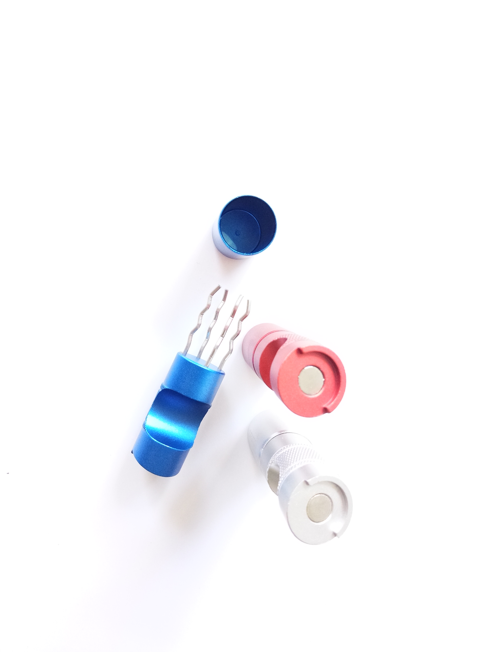 It's shaped to fit your fingers inside, so it's easy to hold and won't stain or damage your pocket when the lid is on.