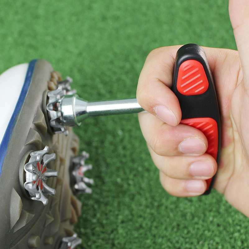 Golf spike replacement aid-- the wrench's ergonomic handle is comfortable for holding, reducing the strain on your hands and wrists.
